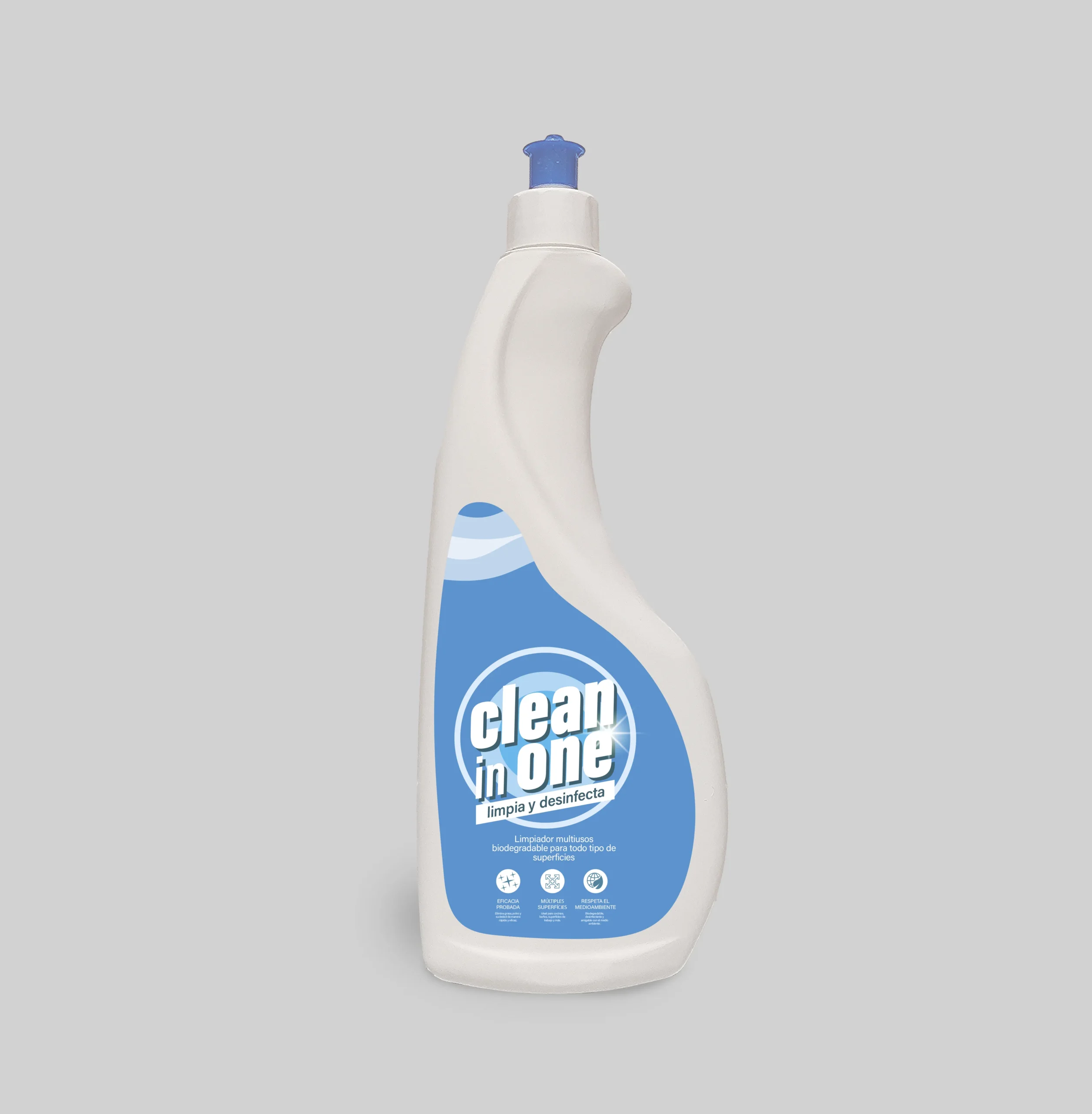 Descubre la versatilidad y eficacia de CLEAN IN ONE, el limpiador multiusos ecológico que necesitas para mantener tus espacios impecables. Formulado para actuar en diversas superficies, CLEAN IN ONE elimina la suciedad y las manchas más difíciles con facilidad. Su fórmula biodegradable lo hace seguro para el usuario y el medio ambiente.